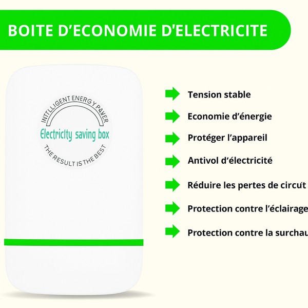 L’économiseur d’énergie électrique est un petit boîtier malin qui se branche directement sur ta prise murale. Une fois connecté, il stabilise la tension, réduit les pertes inutiles d’électricité et protège tes appareils contre les surtensions. Résultat : ta consommation baisse, tes appareils durent plus longtemps, et ta facture devient enfin raisonnable.